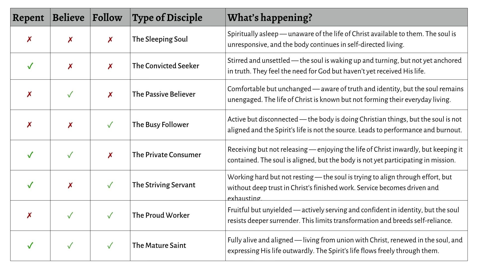 The table below highlights the importance of having all three aspects present in our Spiritual Formation. For example,