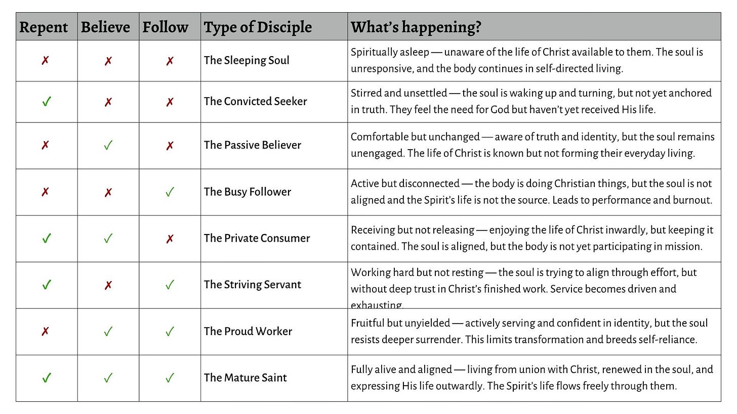 If we only ever repent, but don’t believe or follow, we’ll be stuck in a pity party always aware of our sin but not of God’s life and grace.